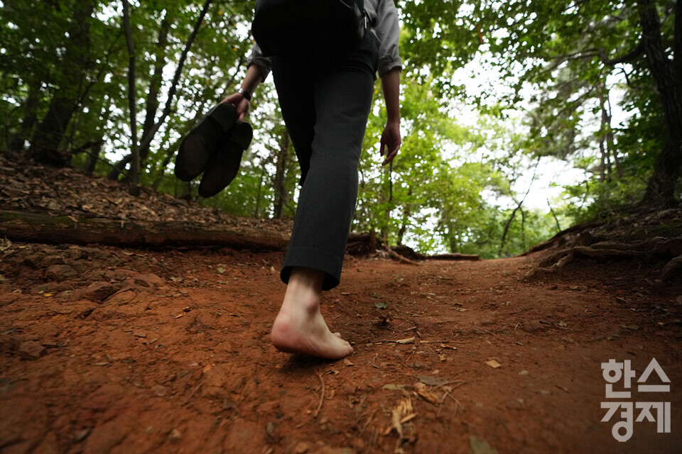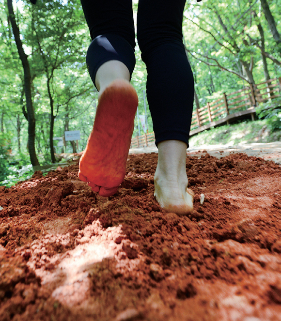 맨발 걷기는 우울증 완화에도 도와준다고 합니다. 숲의 풍경을 보면서 흙의 냄새를 맡고 흙과 작은 자갈 위를 맨발로 걸어가며 시각·후각·촉각 등 다양한 감각 기관이 자극받아 불안감과 우울감 등이 완화되겠습니다. 실제로 흙 속의 지오스민은 숲속 나무가 뿜어내는 피톤치드처럼 심리적 안정을 주는 효과가 있죠. 또 맑은 공기를 마시고 햇볕을 쬐면 행복 호르몬이라고 명명되는 세로토닌 분비도 촉진되겠습니다.