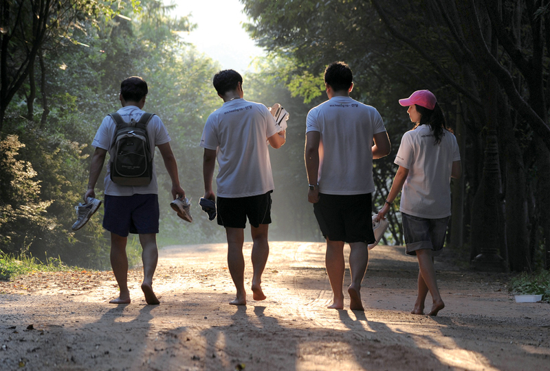 발은 제2의 심장이라고 불릴 만큼 무척 중요한 신체 부위로, 한쪽 발에만 26개의 뼈, 33개의 관절, 100개가 넘는 인대와 근육, 신경이 균형을 이루고 있죠. 맨발로 걸으면 발의 뼈, 근육, 인대가 골고루 강화되고 아치가 결성되며 발의 곳곳에 자극이 가해져 전신의 감각과 기능 강화에 돕는다고 합니다. 적당한 자극은 건강에 도움이 되겠습니다.